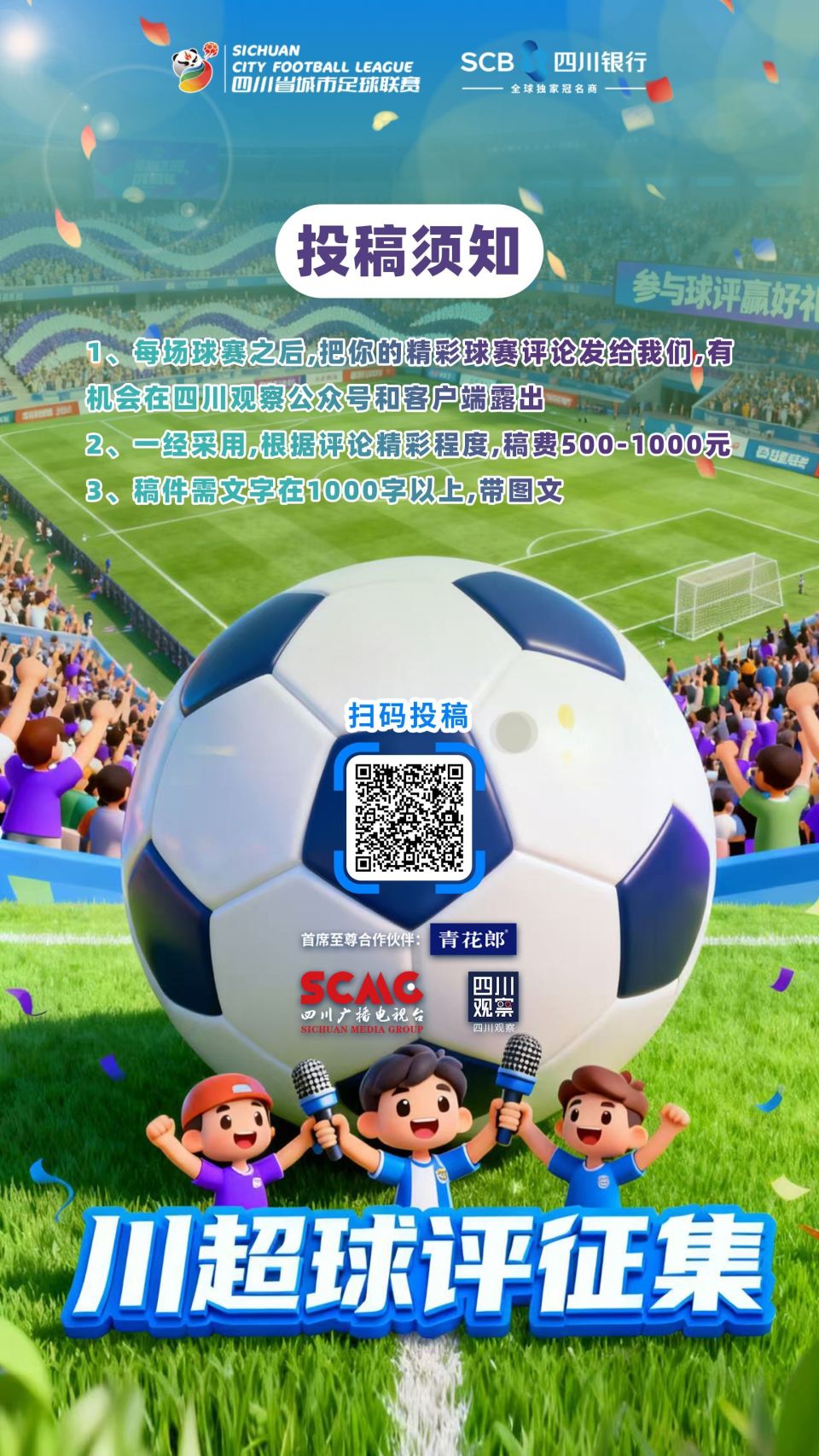 你的观赛故事,同样值得被看见!战术分析的硬核长文、赛场瞬间的温情记录、灵光乍现的趣味段子……你的球评将是“川超”全民狂欢的独特风景线!